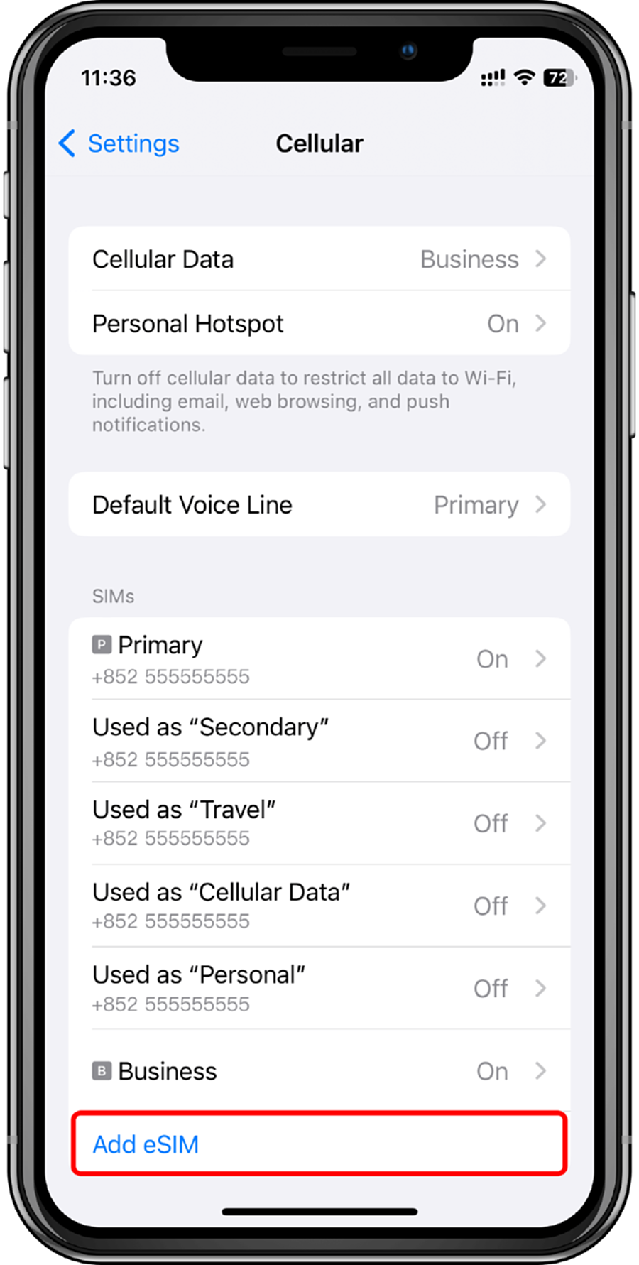 2. Click 'Add eSIM' or 'Set Cellular Number'
