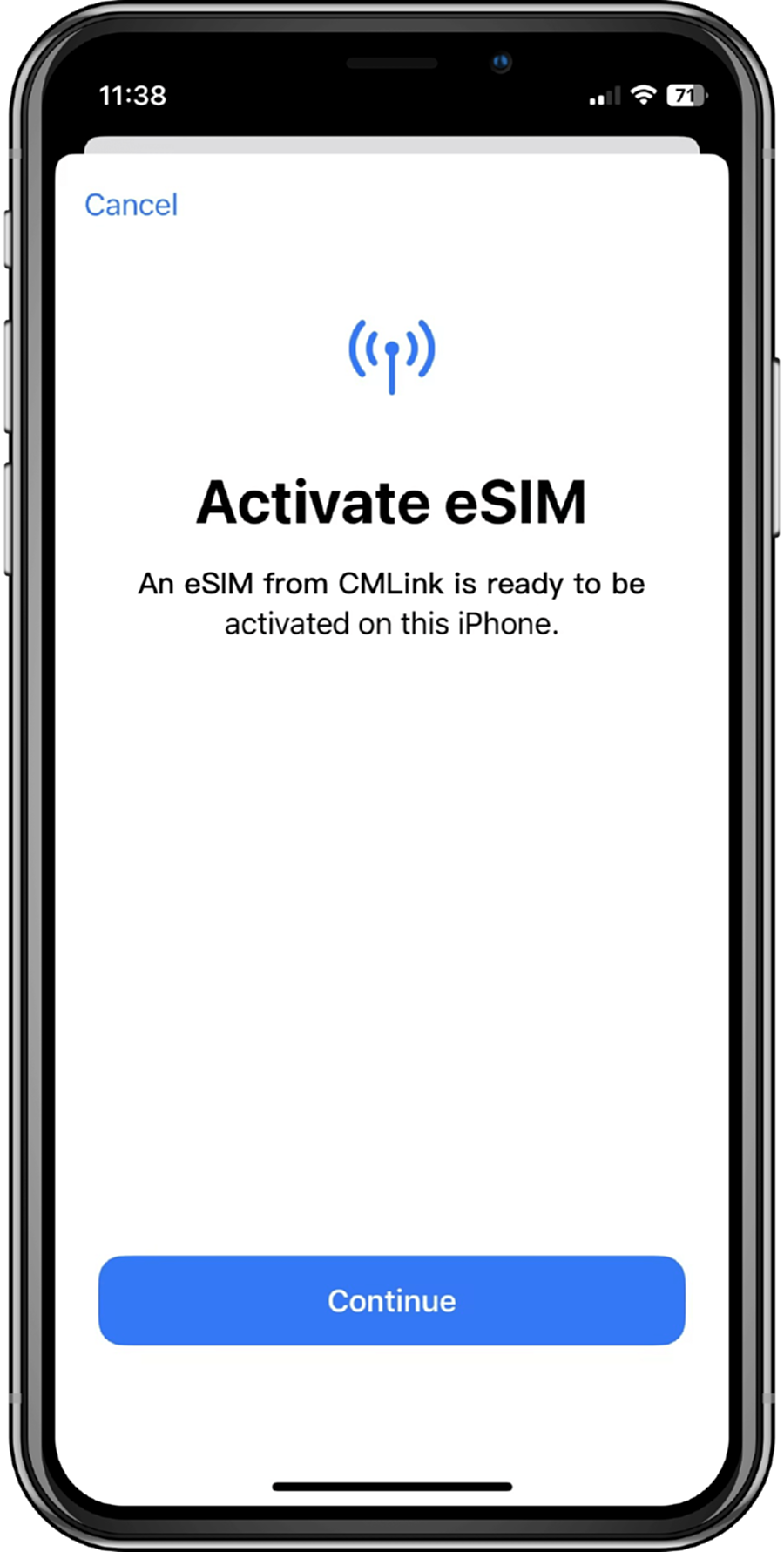 5. Activate eSIM, click 'Continue' to activate