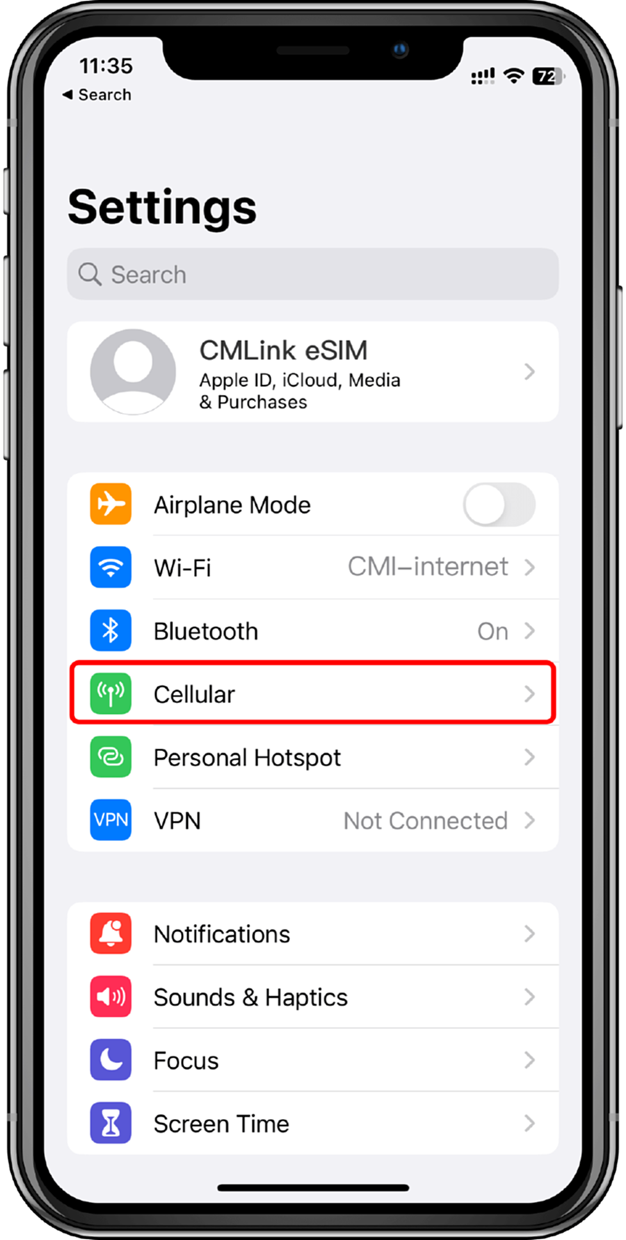 1. Go to the 'Settings' page and click on' Cellular '